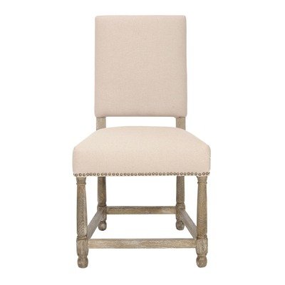 Safavieh Mercer Collection Stratton Linen Side Chairs with Nail Head, Beige, Set of 2?Prepare to impress your family and friends with the gorgeous safavieh mercer collection stratton beige linen nailhead side chairs. the stratton side chair is upholstered in a beige linen and stands on sturdy oak legs that are finished in a pickled oak. it features an elegant nail head detailing, a generously stuffed seat and come in a set of two. no assembly required, these chairs measure 21.85-inch wide by 20-inch deep by 40-inch tall.
