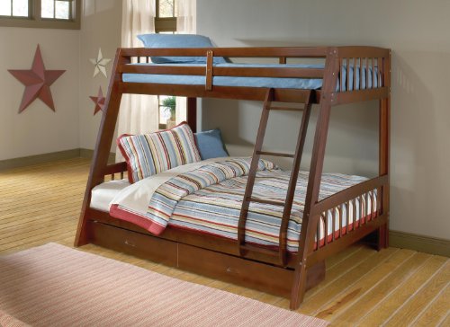 Hillsdale Furniture Rockdale Bunk Bed?Hillsdale's Rockdale Bunk Bed is a great addition to any child's room. A twin upper bunk and full size lower bunk offers lots of room for sweet dreams. Sturdy solid wood construction is complimented by your choice of finishes, Cherry or Espresso. The final fabulous feature, an under-bed storage drawer, perfect for stowing away, toys, clothes, linens and so much more! Whether you choose it for your home, Grandma's house or a vacation home, the Rockdale bunk bed is the right choice.Style TraditionalFinish Medium WoodColor Brown