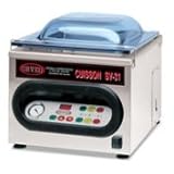 | ✚✚✚ Sv31 Digital Vacuum Machine Professional Vacuum Packing Machine. Command Board: Digital 10 programs Dater: Date in English with 9 sectors and number of batch with 4 figures. Insert Gas System with 1 Nozzle FEATURES: The design of the vacuum packing machine CUISSON SV-31 flows from ORVEDs creativeness and experience as an innovative response to the needs of PROFESSIONAL VACUUM PACKING users. Starting from high quality standards that mark Orveds vacuum packing machines, such as vacuum chambers totally manufactured in STAINLESS STEEL with internal rounded corners or digital control panel, CUISSON SV-31 is marked by new devices, covered by patents; first of all, among these the double depth vacuum chamber, which allows to vacuum pack every product vertically. Thanks to the action of the force of gravity, the products are placed to the bottom of the bag avoiding the suction of liquids or powders during the cycle of vacuum creation. Another innovative device, patented too, regards the system to lift the sealing bar thanks to special levers placed on both sides of the vacuum chamber; this mechanism is very useful for the hygiene inside the vacuum chamber. With a simple gesture it is possible to remove the sealing bar, facilitating the access to the vacuum chamber and assuring a better cleaning on all of its parts, fundamental when vacuum packing fruit and vegetables. A new, useful function is the possibility of printing on the border of the bag the date of the packing. The vacuum packing machine CUISSON SV-31, endowed with digital control panel, with sensorial and ultravacuum function, is also equipped with gas options with 1 nozzle. Available bags: Smooth bags SPECIFICATIONS: Sealing Beam: 12 1/4 Pump Speed: 425 cf/h Final Pressure: 2,0 Bar 16 9/10" W x 24 1/5" D x 16 1/2" H 120 V, 60 Hz, 540 W