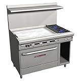 Are you looking for the best review for Southbend 4481AC-3GL 48 5/8" Restaurant Mixed Top Range - Ultimate 400 Series? Read customer review, features, specifications, description, check prices update and more satisfying for Southbend 4481AC-3GL 48 5/8" Restaurant Mixed Top Range - Ultimate 400 Series product reviews! The Southbend 48 5/8" Restaurant Mixed Top Range - Ultimate 400 Series (4481AC-3GL) is an exceptionally robust and versatile restaurant range that features two open burners and a 36 inch griddle. The griddle produces an incredible 64, 000 BTU and is equipped with a cold-rolled steel cooking plate. The two burners on the right side of the range top are made from a single piece of durable cast iron and each produce 33, 000 BTU. The combination base features a stainless steel cabinet for added storage space and a convection oven that produces a full 32, 000 BTU. Best of all, the entire range is covered by Southbend's exclusive, one-year No Quibble, 24/7 parts and labor warranty. Features: Snap action thermostat, 6" high adjustable legs, Heat resistant door handle, Clog-free cast iron burners, Porcelain enamel oven interior, 36" griddle produces 64, 000 BTU, High-efficiency convection oven base, Open burners equipped with standing pilots. Benefits: Cast iron grate top capable of holding 14" stock pot, Removable one piece drip tray catches grease under burners, Convection oven is equipped with a flame failure device for improved safety, Stainless steel front, sides and shelf for improved durability and corrosion resistance, 1/2" cold rolled steel griddle plate minimizes the griddle's recovery time yet is incredibly durable, Counter-balanced, heavy-duty oven door will stand up to harsh use and eliminates sagging oven doors. Additional ConsiderationsMany customization options and accessories are also available. Please contact one of our friendly Product Experts at 1-877-877-4379 for additional information or to customize your own!