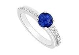 | ✚✚✚ Sapphire and Diamond Engagement Ring : 14K White Gold - 0.50 CT TGW Size 14.5 A bigger brilliant-cut round blue sapphire is prong-set in the center. Smaller round diamonds make two rows on the sides of the center stone. Made in 14K white gold & has a total weight (TGW) of 0.50 carat also available matching wedding band model no. W3080BW14D.