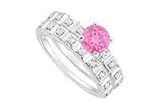 Pink Sapphire and Diamond Engagement Ring with Wedding Band Set : 14K White Gold - 0.50 CT TGW SizeGorgeous engagement ring and wedding band set features a large round prong-set pink sapphire in the center & is flanked by eight smaller round diamonds on sides along with matching wedding band to make a perfect set of ring. Made in 14K white gold & has a total weight (TGW) of engagement ring 0.40 carat and wedding band 0.10 carat.
