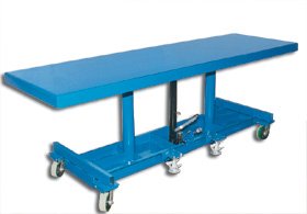 Hydraulic Lift Cart, Long Deck, 120x30 In Hydraulic Lift Cart, Long Deck, Load Capacity 2000 Lb., Platform Length 120 In., Platform Width 30 In., Raised Height 48 In., Lowered Height 31 In., Caster Dia. 5 In., Caster Type Swivel Polyurethane, Foot Pump, Blue Powder Coat Finish, Includes 2 Floor Locks