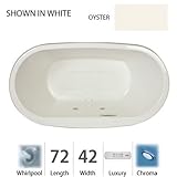 Jacuzzi Mio Collection Whirlpool MIO7242-WCR-4CH-Y. Mio Collection:Everything you need in a luxury tub is right here, in JacuzziÂ's Mio collection. It comes in your choice of four colors (white, black, almond, and oyster), is available in two different sizes, and would be a gorgeous addition to any bathroom. The simple, straightforward look of the Jacuzzi Mio luxury bath includes integrated dual-armrests, an asymmetrical deck to properly showcase a faucet, as well as a tapered bottom to maximize the size of the interior bathing well.Integrated Dual-Armrests - Convenient armrests are sculpted into the bathing wellMeasurements:72"L x 42"W x 25"HLuxury Whirlpool:At its most basic form, the three things needed to create a whirlpool experience are water (moved through a pump), air (mixed with the water), and jets (Therapro and AccuPro). Jacuzzi s Comfort Whirlpool models do just this. A single speed motor and patented fixed airflow system push mixed water through 5-8 jets. Luxury models take things even further by swapping out the single-speed motor for a multi-speed motor and upgrading the airflow systems to electronically operated and patented Silent Air Induction technologies. Luxury Models tend to have double (in some cases, triple) the jets of Comfort models, enhanced user controls, and a number of optional high-tech upgrades including Whisper technology, Illumatherapy lighting, and LCD user controls. When Shopping Jacuzzi Whirlpools it is important to understand what you are looking for. For some, it is a basic model that offers invigorating bathes at an excellent price-point. For others, it is a statement-making bathroom centerpiece. Whichever it may be, we have got you covered with Jacuzzi s full line of industry-leading Whirlpool tubs. Listed below are the details for the Jacuzzi Luxury Whirlpool.Powerful Multi-Speed Motor
