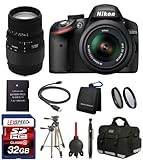 Nikon D3200 W/ 18-55mm VR Lens+ Sigma 70-300mm Lens + Battery + Deluxe Bag + Two Multi-Coated 2PC Filter Kits + 32GB (10) Deluxe Kit