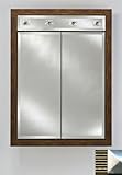 Are you looking for the best review for Afina Corporation DD-LC2434RMERGS 24 in.x 34 in.Recessed Double Door Cabinet with Contemporary Lights - Meridian Gold-Silver? Read customer review, features, specifications, description, check prices update and more satisfying for Afina Corporation DD-LC2434RMERGS 24 in.x 34 in.Recessed Double Door Cabinet with Contemporary Lights - Meridian Gold-Silver product reviews! Outside Dimensions: 24" x 34". Rough Wall Opening: 21" x 31-1/4". 6 Glass Shelves. 3/4" Perimeter bevel mirror standard. 3/8" Thick adjustable glass shelves. Matching beveled mirror behind lights. Up to 60 watts per socket. Gray satin anodized aluminum construction. 3 Mirror design (front bevel mirror, mirror behind door and inside mirror back). Finish: Meridian Gold/Silver.