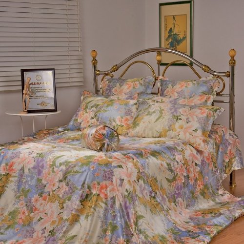 #This floral pattern duvet cover set is made of 100% mulberry silk, owns pearl like luster and is soft natural in touch. As a miraculous natural fabric, silk is a ideal fabric for bedding, it is incredibly responsive to body temperature, and it is the most hypoallergenic material you can buy, so you can expect a high quality sleep with our silk beddings.