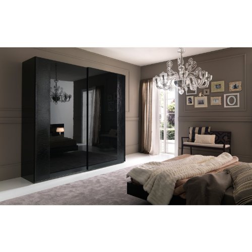 Rossetto USA Nightfly 80 in. 2 Door Sliding Wardrobe - Ebony?Complete your bedroom ensemble and add a dash of bold contemporary style with the Rossetto USA Nightfly 80 in. 2 Door Sliding Wardrobe - Ebony. You won't find another piece quite like it! This wardrobe was designed by Italian craftsmen from hardwood solids and veneer that's been given a glossy lacquer finish that shimmers. For an even more unique touch, crocodile leather embellishments were used all around the borders for a modern look that will never go out of fashion. Its two sliding doors glide open effortlessly to expose a deep storage space that gives you plenty of room to hang all of your garments and even an overhead shelf that's perfect for hats, shoes, and other treasures you wish to set aside for a special occasion. Measures 27W x 80D x 93H inches. Some assembly is required.