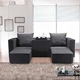 3-Seat Black and Charcoal Versatile Foam Sofa3-Seat Black and Charcoal Versatile Foam Sofa. This furniture can be rearranged for multiple seating options with its unique design. The sofa can be used in multiple seating options: Sofa, 2-Seater Lounge with Center Armrest, Left-Hand 2-Seater Lounge with Right-Armrest, and Bench. Removable upholstery is washable and easy cleaning. Three large ottomans with zipper-attached for easy removal from actual sofa. Three extra plush back pillows and serving tray included with set. Dimensions: - Sofa: 32"D x 91"W x 13"H - Detachable Ottoman: 24.13"D x 25"W x 12.5"H - Bench: 32"D x 91"W x 25.5"H - Tray: 15"D x 15"W x 1.9"H - Pillows (3): 20.5"W x 24"D (standard)