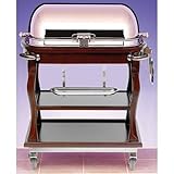 Bon Chef Mahogany 42" Roast Beef Trolley w/ S/S Rollback CoverThis 42" roast beef trolley features a solid hardwood body with a mahogany finish and a full rollback cover in hotel-weight, high-polished stainless steel. The cover is vented to prevent condensation and also has a special locking handle. Underneath the cover are a 15" x 10" white composition carving board, two 40 oz stainless steel drop-in containers, and a stainless steel water pan with adapter. This trolley also includes four handles, a knife tray, a plate holder and four swivel casters (two with locks), all made of stainless steel.Solid Hardwood Construction Vented S/S Full Rollback Cover w/ Locking Handle 4 S/S Exterior Handles S/S Knife Tray + Plate Holder White Composition Carving Board Dual S/S 40 oz Drop-In Containers S/S Water Pan w/ Adapter 4 S/S Swivel Casters (2 w/ Locks) Overall Height: 42½" Overall Length: 42" Overall Width: 23½" Carving Board Height: ½" Carving Board Length: 15" Carving Board Width: 10" Color: Mahogany Material: Hardwood Model #: 50000 672054